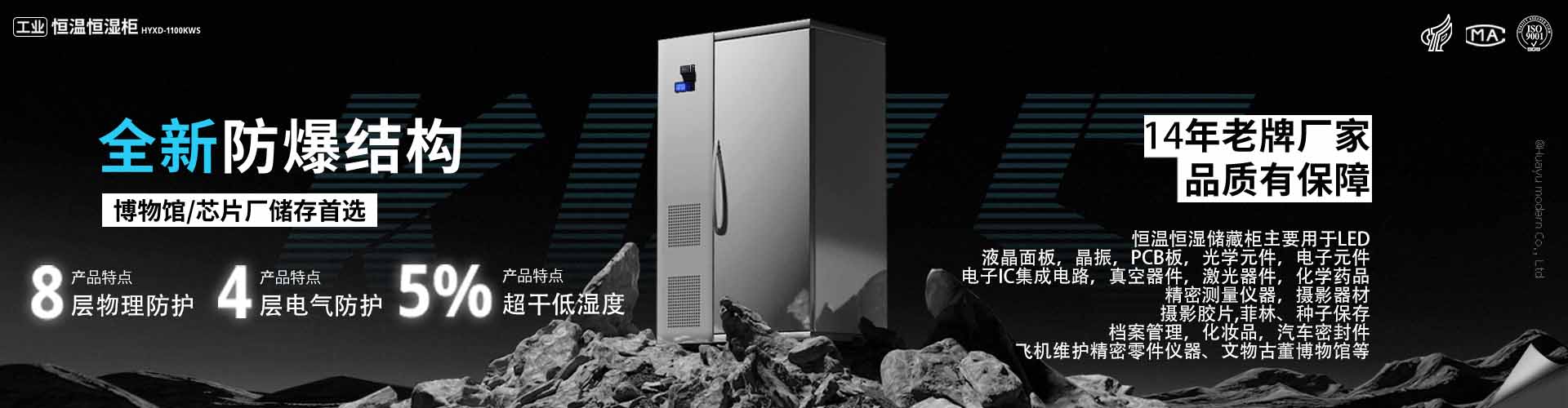 華宇現(xiàn)代主營產(chǎn)品:恒溫恒濕柜,電子防潮柜,投影機(jī)柜,恒溫恒濕展柜,恒溫恒濕機(jī),恒溫恒濕試驗箱